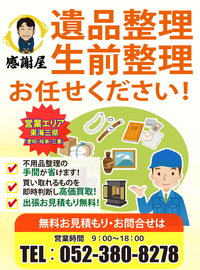 遺品整理・生前整理(お部屋・ゴミ屋敷片付け・貴金属、ブランド品、家電、雑貨等買取り、