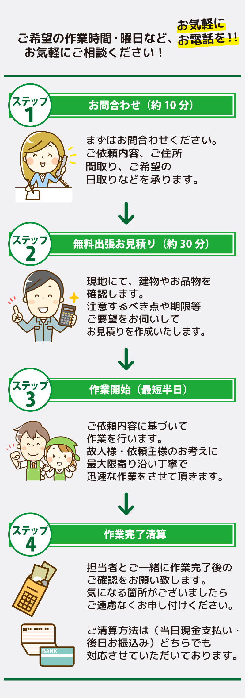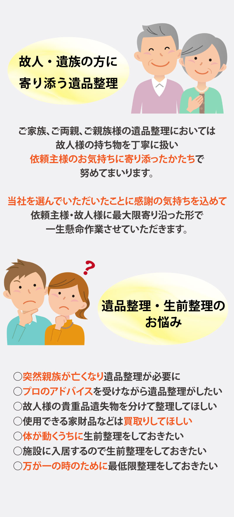 感謝の気持ちを大切に真心込めたお片付けをお約束いたします。