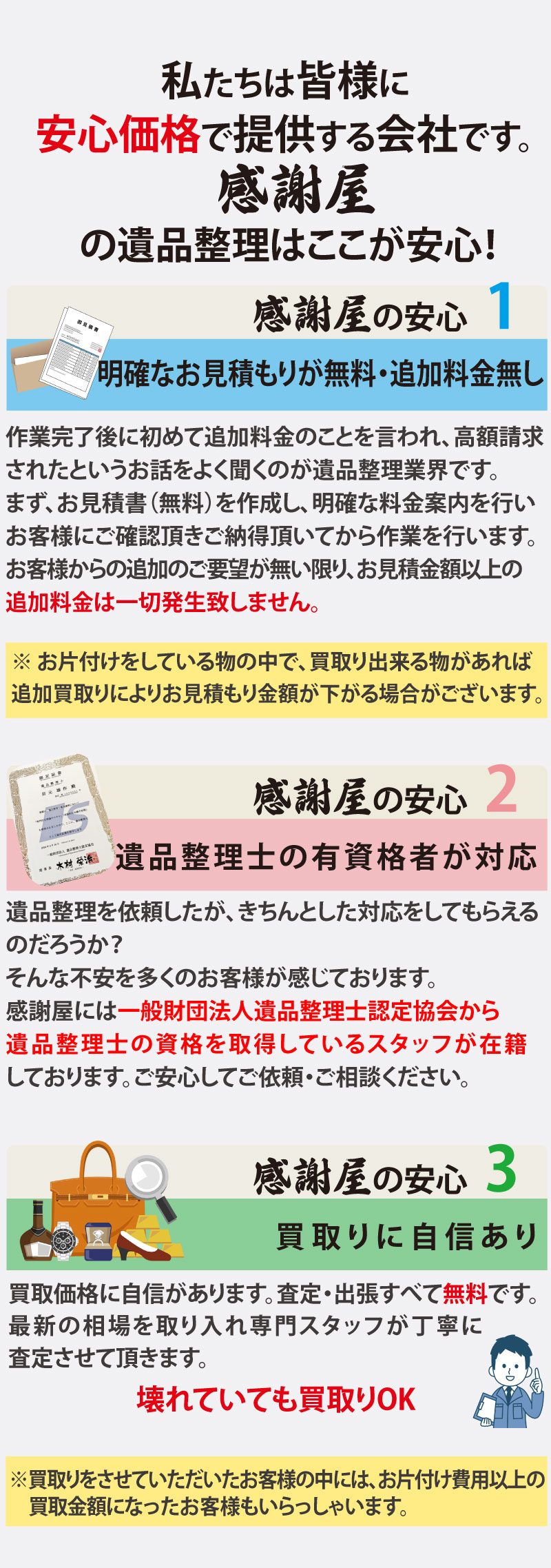 感謝の気持ちを大切に真心込めたお片付けをお約束いたします。